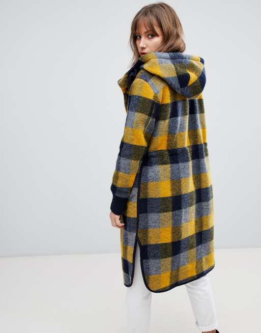 Product Name: Checked hooded coat outlet