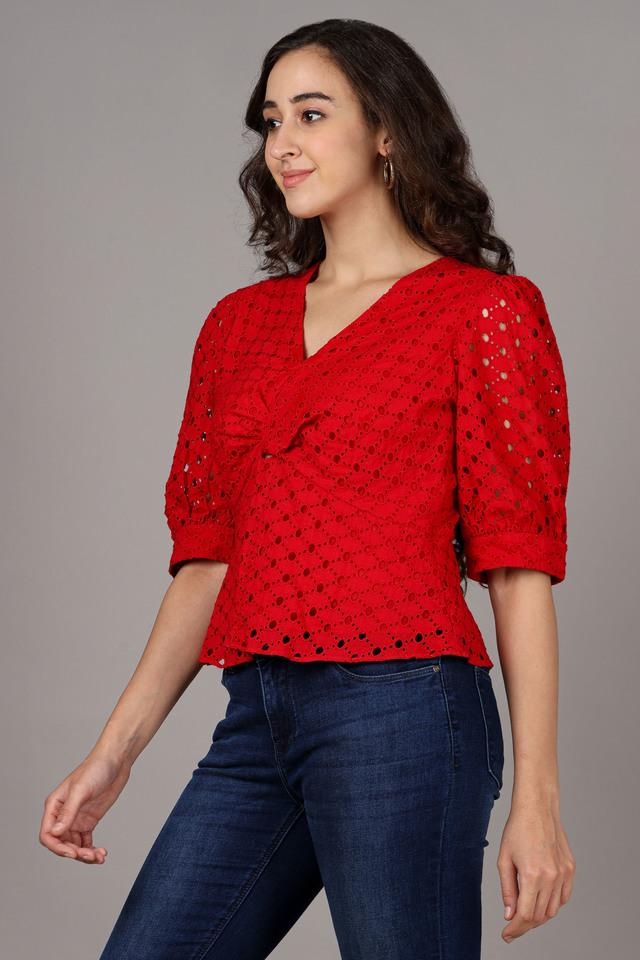 Product Name: Red tops for jeans outlet