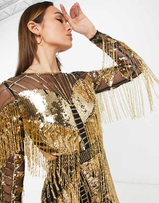 Product Name: Sequin and tassel long sleeve bodycon dress outlet