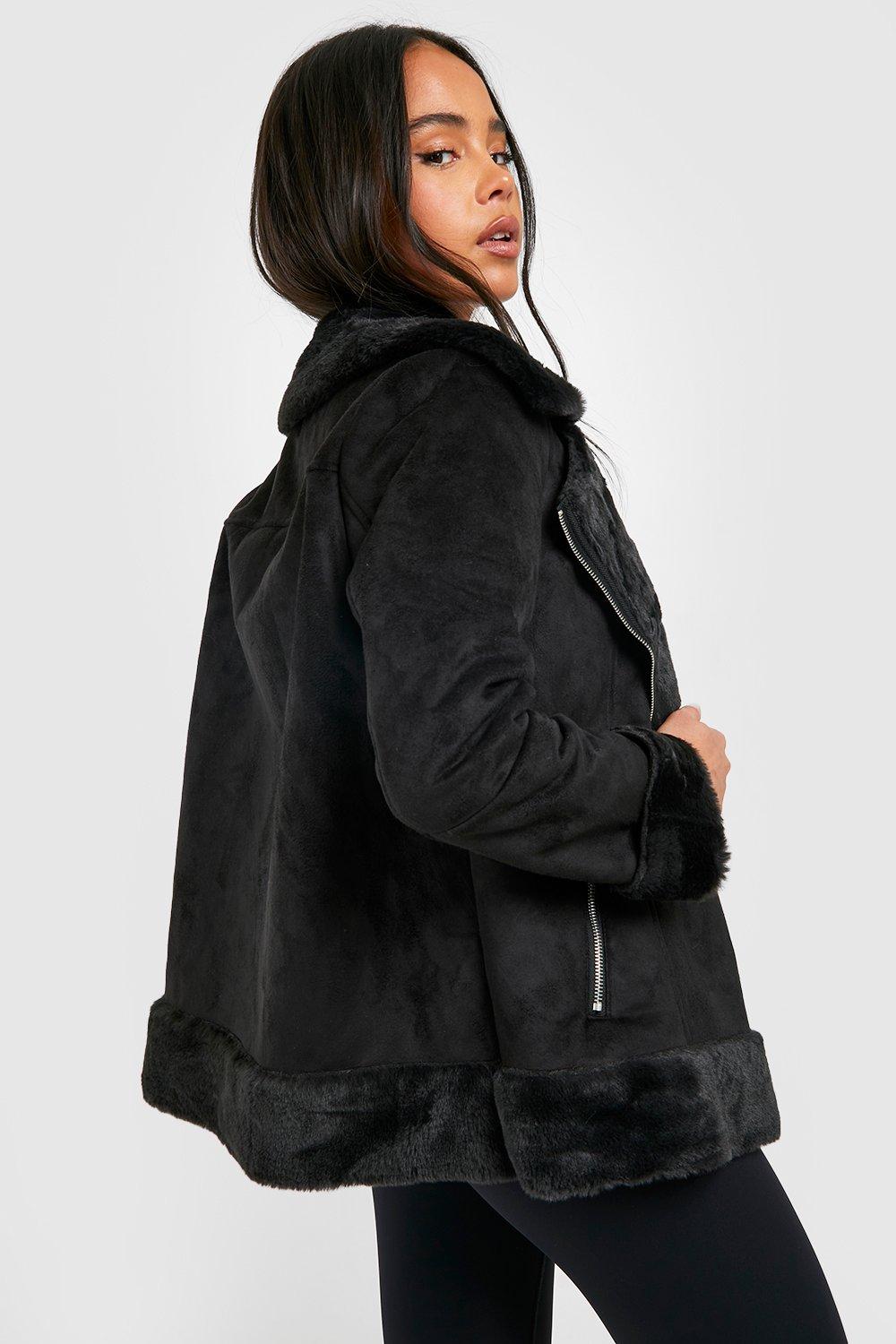 Product code: Petite black faux fur aviator jacket outlet